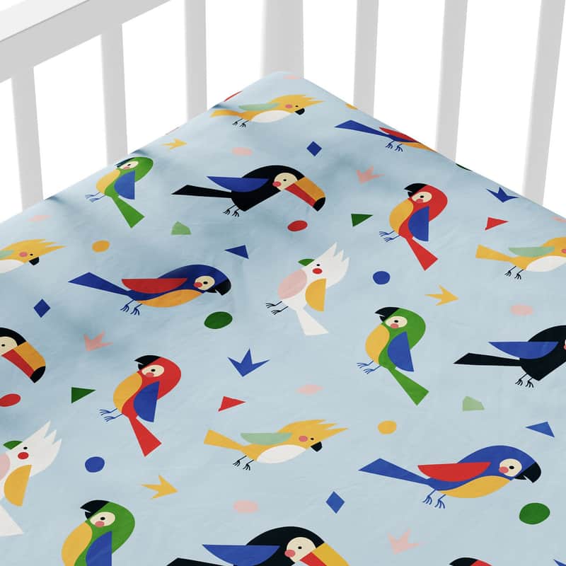 Lençol Berço com Elástico Passarada Azul da Grão de Gente: R$ 32,29 no PIX ou R$ 37,99 em ate 12x sem juros. Frete gratis acima de R$499. Entrega rastreada com garantia de 7 dias para trocas.