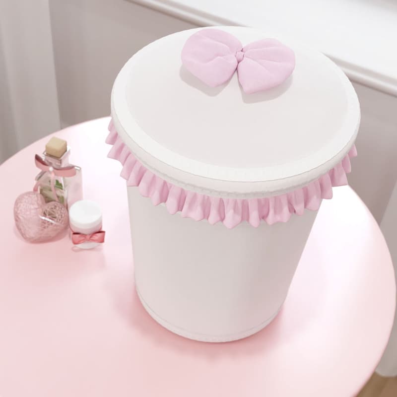 A Lixeira do enxoval Pequena Bailarina combina com diversos temas femininos para decoração do quarto de bebê, pois seus babados cor de rosa e o lacinho floral são bem suaves. Esse modelo plástico com tampa é a escolha mais indicada para o quartinho, para descartar pequenos objetos, algodão, cotonetes e até a fraldinha na hora da troca.