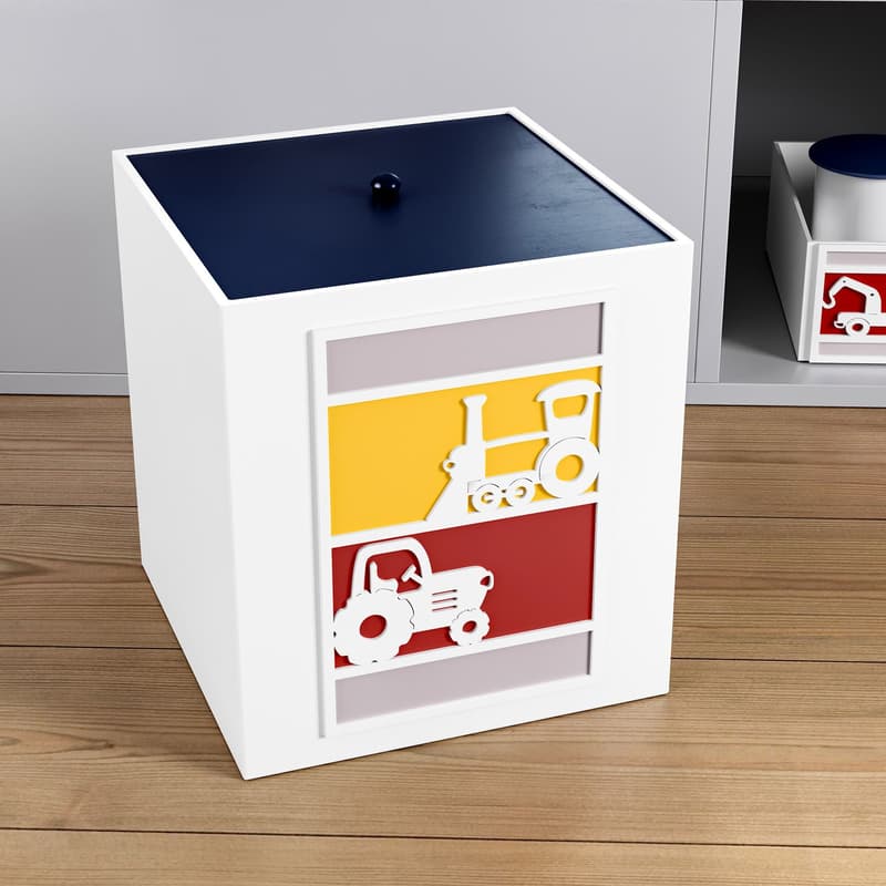 Produzida em madeira 100% MDF, a Lixeira Transportes traz apliques coloridos de trator e trenzinho para completar o visual do quarto de bebê e facilitar sua rotina de cuidados com o seu amor. Sua paleta de cores traz detalhes em amarelo, vermelho, cinza e azul marinho para adicionar cor à decoração.