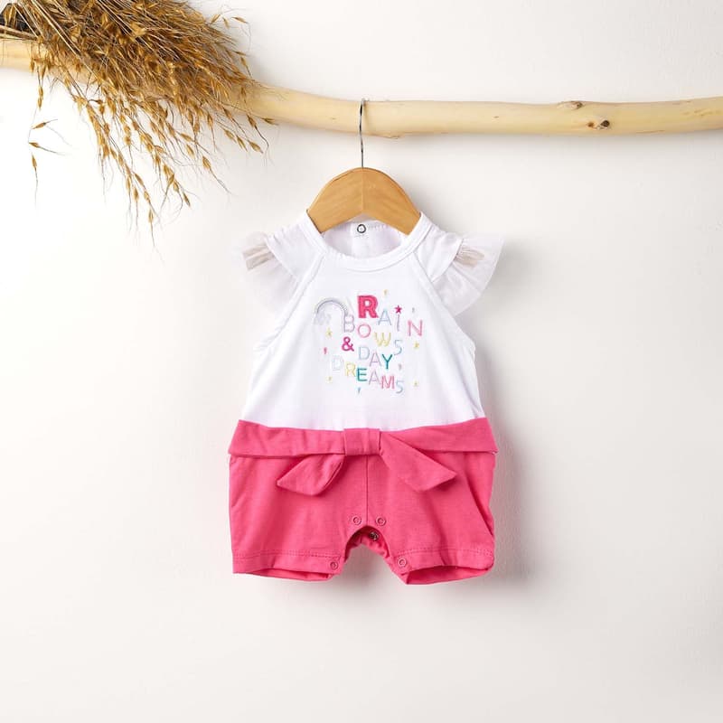 O Macacão Curto Laço Rosa é uma ótima escolha para sua pequena ficar confortável, ainda mais fofa e cheia de estilo.