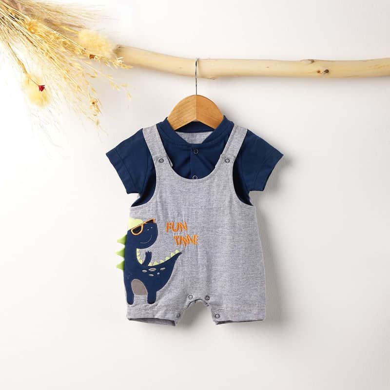 Macacão Jardineira Curto Dino Fun Time Azul Marinho da Sonho Meu: R$ 71,39 no PIX ou R$ 83,99 em ate 12x sem juros. Frete gratis acima de R$499. Entrega rastreada com garantia de 7 dias para trocas.