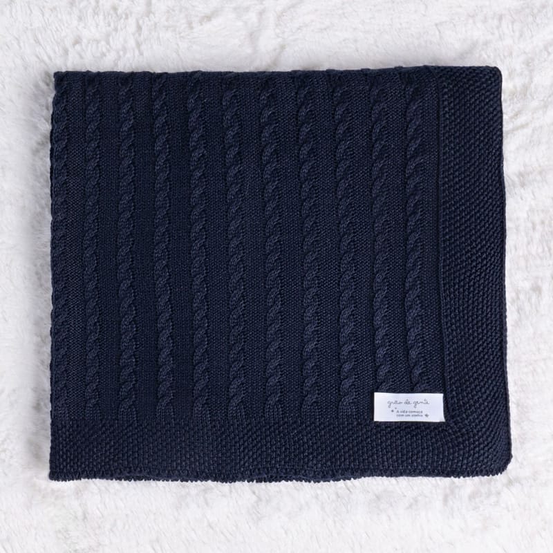 Manta Tricot Poá Azul 1,45m