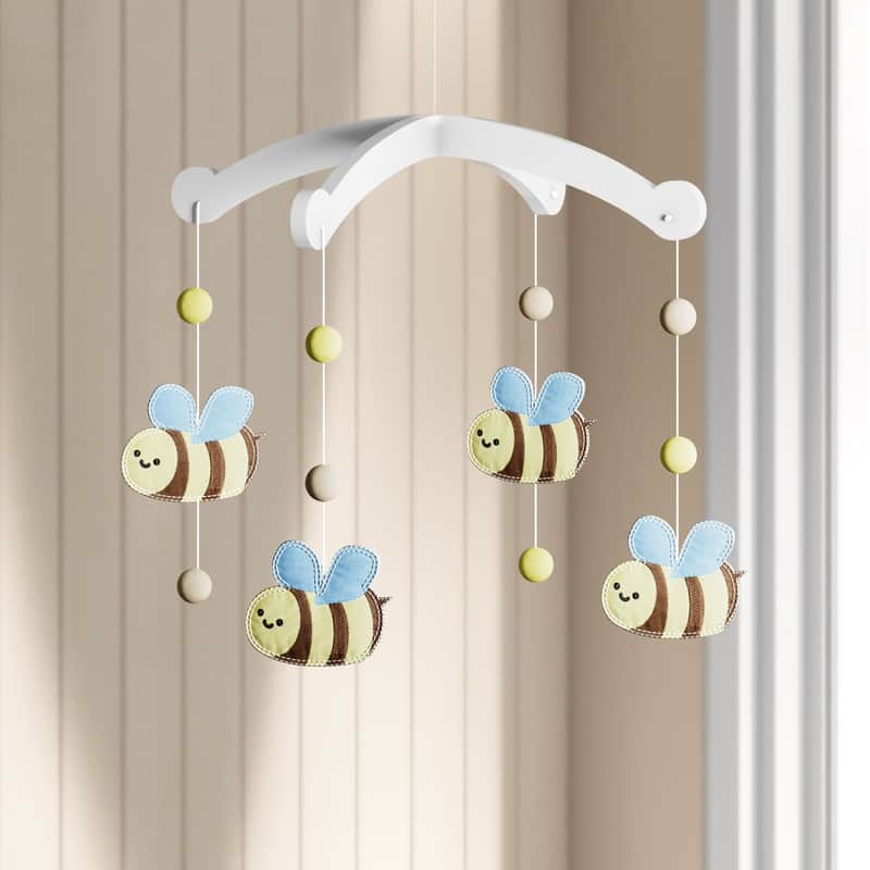 Móbile Abelhinhas da Grão de Gente: R$ 96,89 no PIX ou R$ 113,99 em até 12x sem juros. Frete grátis acima de R$499. Entrega rastreada com garantia de 7 dias para trocas.