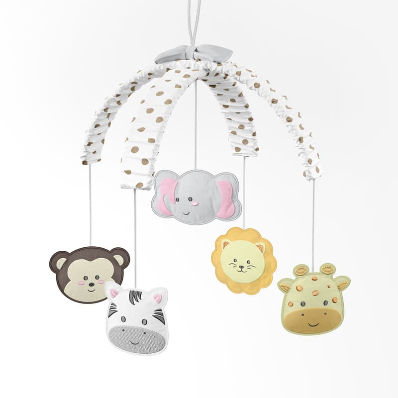 O Móbile Amiguinhos Safári Poá Bege é um acessório lúdico e com um toque extra de fofura para compor a decoração do quarto de bebê!