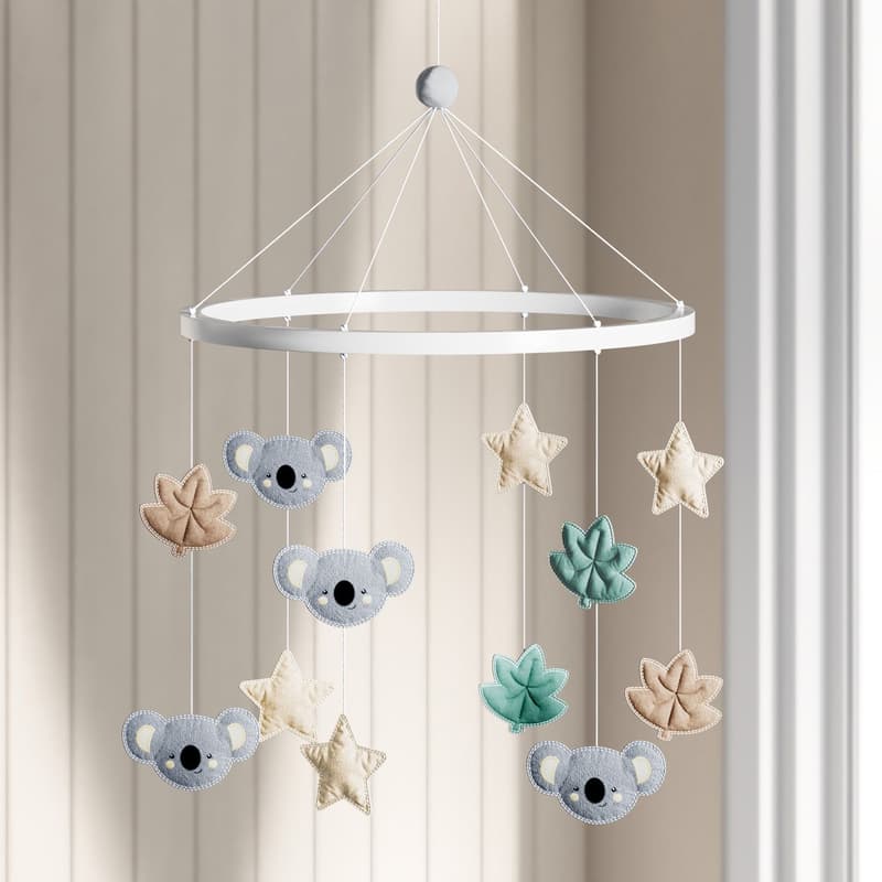 Um acessório clássico para compor a decoração do quarto de bebê! O Móbile Coala, Estrela e Folha pode ser usado no berço, na cama montessoriana e onde mais você preferir. Esse modelo traz uma linda inspiração da natureza para o quarto de bebê, enfeites bordados de tecido que você vai amar.