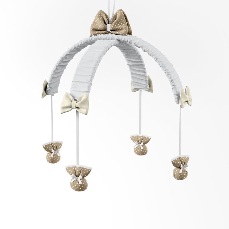 O Móbile Poá Bege e Cinza é um acessório lúdico e com um toque extra de fofura para compor a decoração do quarto de bebê!
