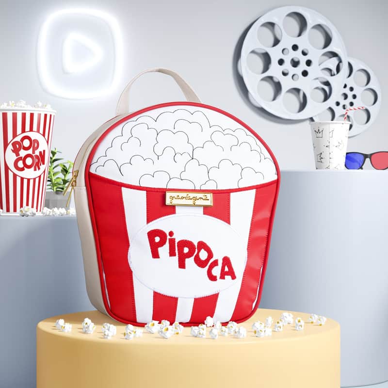 Mochila Infantil Pipoca Branco e Vermelho 27cm