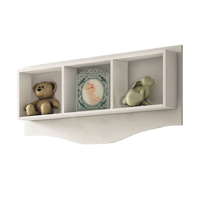 Com três nichos, o móvel é um importante aliado na decoração e organização do quartinho. Produzida em MDF, a peça é versátil e ótima para acomodar objetos de decoração, pelúcias, livros e porta-retratos.