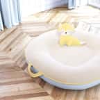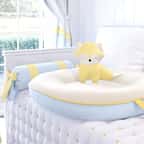 Ninho, o seu pequeno vai se sentir num verdadeiro lounge! Desenhada com carinho, ela estimula a musculatura do bebê e se transforma num espaço seguro de lazer, pronto para a sua menininha ou menininho brincar, criar e se movimentar! O assento é confeccionado num tecido de toque aveludado (plush) e serve de apoio na fase de aprender a sentar e engatinhar. A alegre paleta de cores revela o bom gosto das mamães combinando azul bebê e amarelo.
