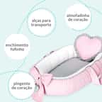 O Ninho para Bebê Redutor de Berço Coração Rosa e Cinza é um produto exclusivo da Grão de Gente. Com enchimento fofinho, alças de tecido para transporte e zíper para facilitar a lavagem, o ninho é excelente para todas as fases do bebê e acompanha o crescimento da criança.