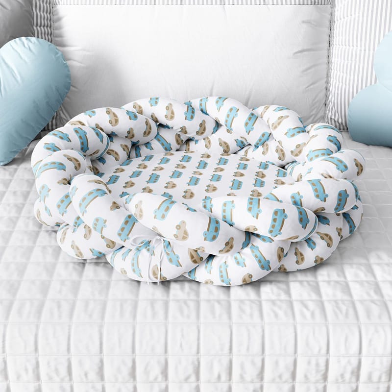 Ninho para Bebê Trança Carrinhos Azul e Bege 80cm – Azul