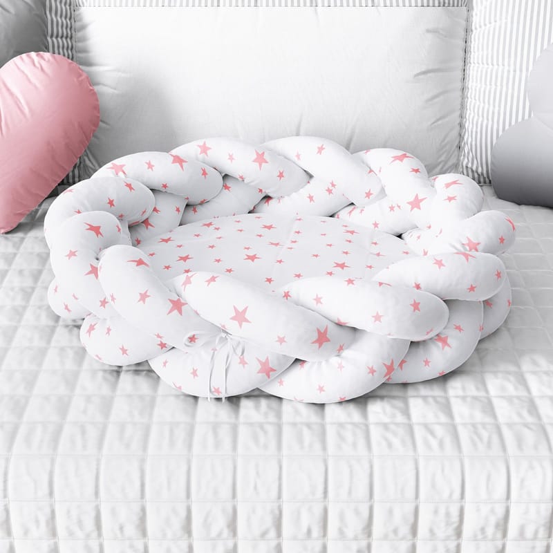 Recomendado para crianças de até 3 anos, esse ninho multifuncional possui um colchonete macio com amarris para fixação da trança. Quando seu amor estiver crescidinho, você pode usar como trança protetora no berço ou na cama infantil.