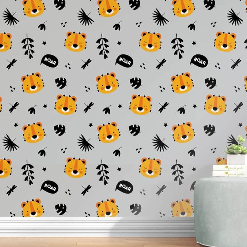 Papel de Parede Leãozinho Roar Laranja, Cinza e Preto 3m da URA Adesivos: R$ 125,79 no PIX ou R$ 147,99 em até 12x sem juros. Frete grátis acima de R$499. Entrega rastreada com garantia de 7 dias para trocas.