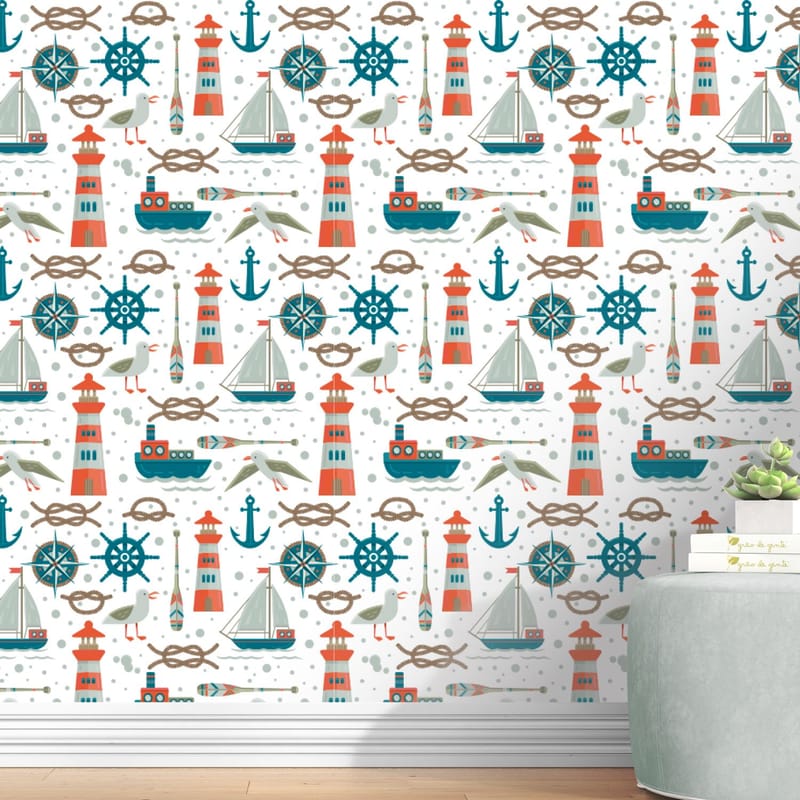 Decore o cantinho do seu amor com a praticidade e a beleza do Papel de Parede Náutico Azul e Vermelho. Por ser autoadesivo, não precisa de preparação de cola para aplicação. Para saber a quantidade de papel ideal no quartinho, basta dividir a largura da parede por 50cm.