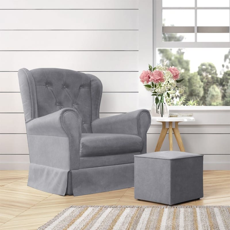 Poltrona Amamentação Balanço com Puff Provençal Cinza