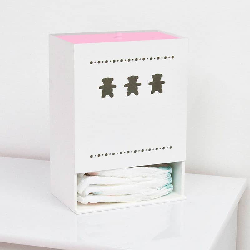 Porta Fraldas Theodore Rosa da Marcenaria Grão de Gente: R$ 92,64 no PIX ou R$ 108,99 em ate 12x sem juros. Frete gratis acima de R$499. Entrega rastreada com garantia de 7 dias para trocas.
