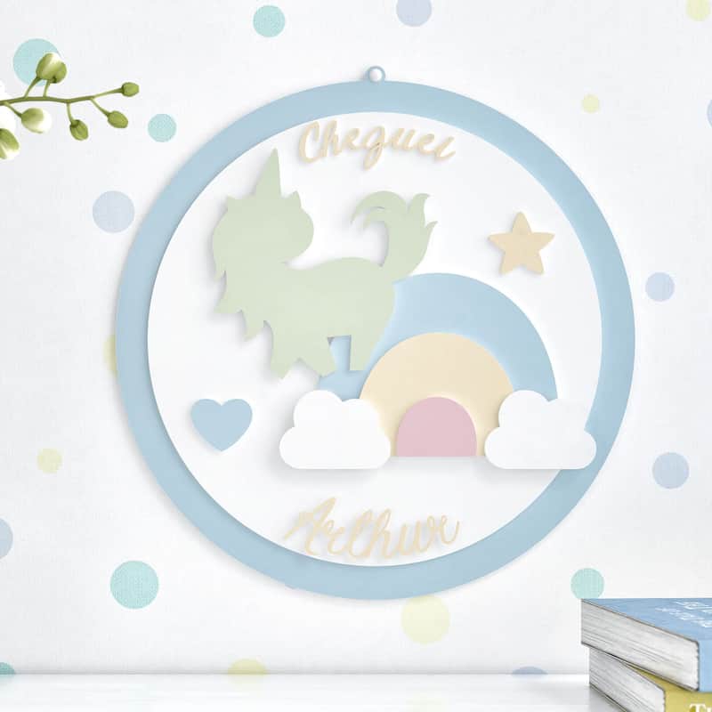 Porta Maternidade Personalizado Unicórnio Arco-Íris da Grão de Gente: R$ 125,79 no PIX ou R$ 147,99 em ate 12x sem juros. Frete gratis acima de R$499. Entrega rastreada com garantia de 7 dias para trocas.