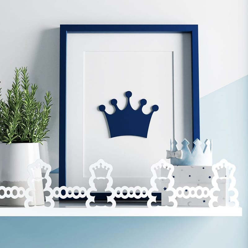 A partir de um novo olhar para o clássico, a Prateleira MDF Urso Realeza é um modelo para transformar a decoração do quarto de bebê. Versátil, a peça com ursinhos vazados e coroas pode apoiar livros, bichinhos de pelúcia ou outros objetos decorativos, adicionando um toque lúdico e aconchegante para o ambiente!