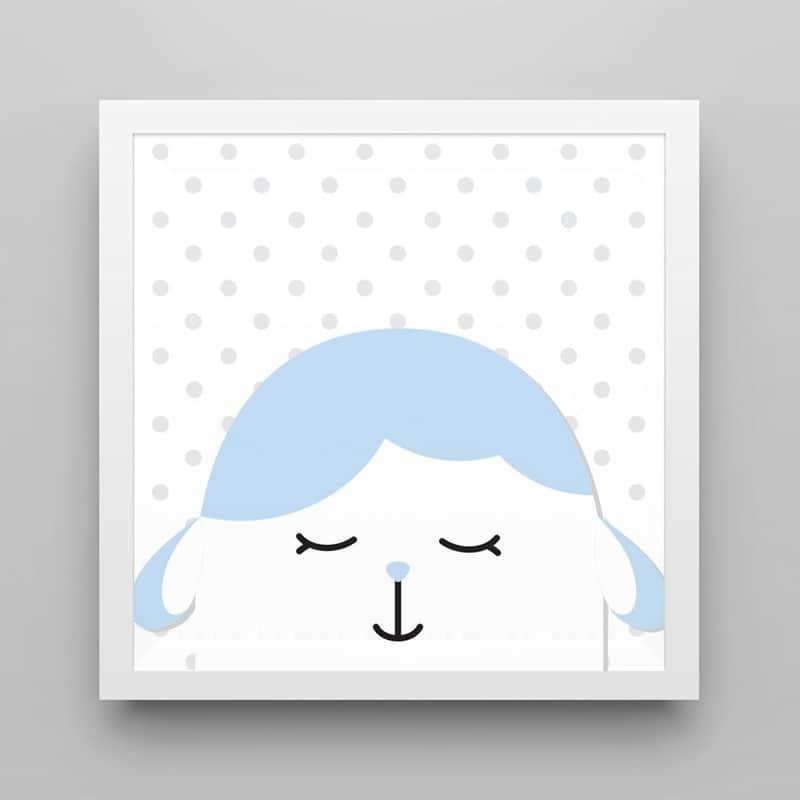 Quadro Amiguinho Carneirinho Azul Bebê/Branco 38cm