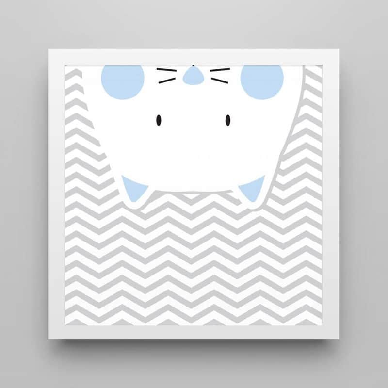 Quadro Amiguinho Gatinho Azul Bebê/Branco 38cm