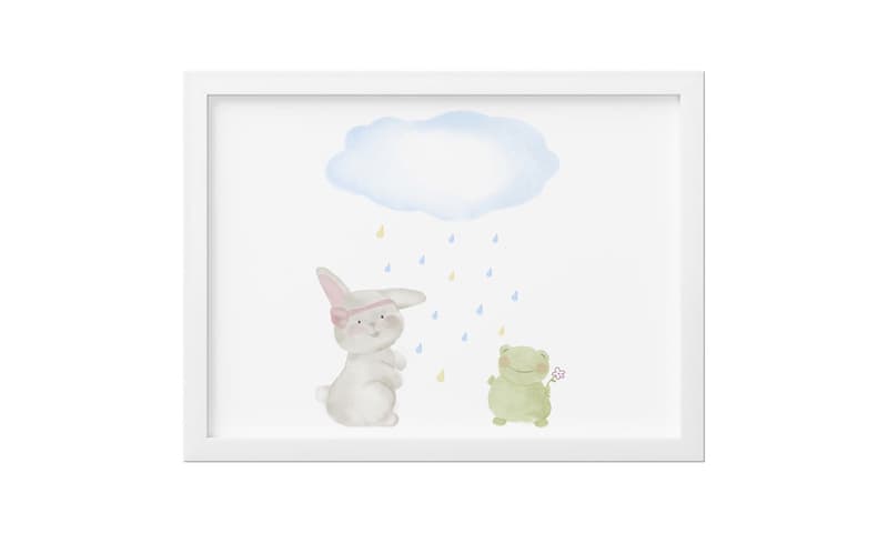 Quadro Decorativo Coelhinha com Sapinho na Chuva 33cm x 25cm - Moldura 2cm larg. x 9mm esp. |