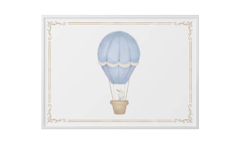 Quadro Coelho no Balão Azul 60cm da Grão de Gente: R$ 123,20 no PIX ou R$ 144,94 em até 12x sem juros. Frete grátis acima de R$499. Entrega rastreada com garantia de 7 dias para trocas.