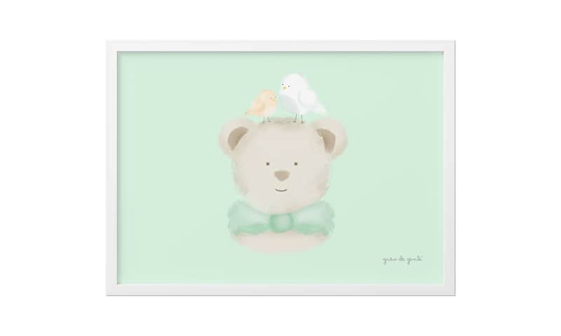 Quadro Ursinho e Passarinhos Verde 46cm da Grão de Gente: R$ 97,43 no PIX ou R$ 114,62 em até 12x sem juros. Frete grátis acima de R$499. Entrega rastreada com garantia de 7 dias para trocas.