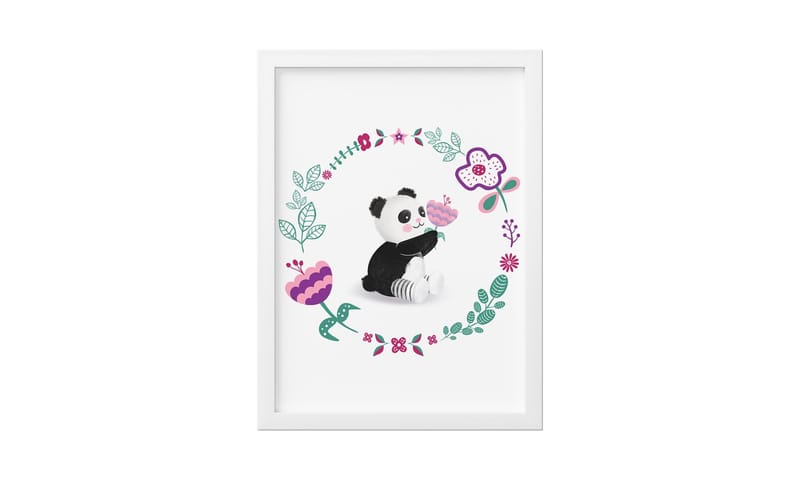 Quadro Decorativo Urso Panda Floral 25cm x 33cm - Moldura 2cm larg. x 9mm esp. |