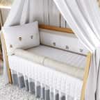 • Cabeceira e lateral do Kit Berço já vêm com enchimento, amarris para fixação no berço e zíper para facilitar a lavagem;