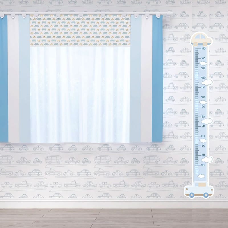 Régua Crescimento Adesivo de Parede Carrinhos Azul e Bege