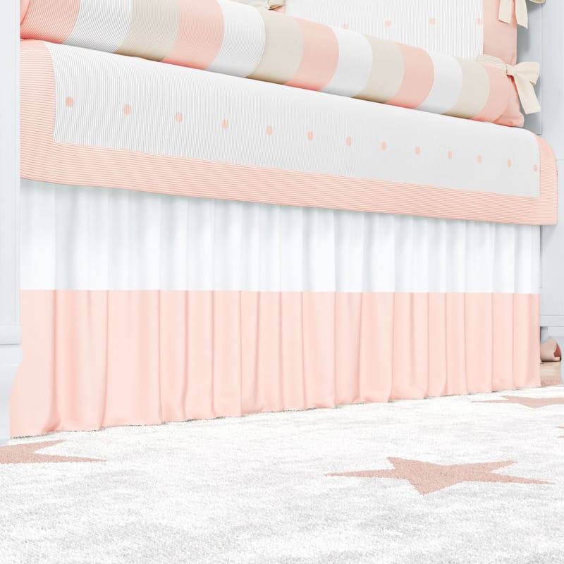 Esconder o estrado do berço fica bem mais estiloso com a Saia de Berço! Esse acessório é simples e encantador ao mesmo tempo, dando o toque da Coleção Tricot Poá Salmão nos mínimos detalhes.