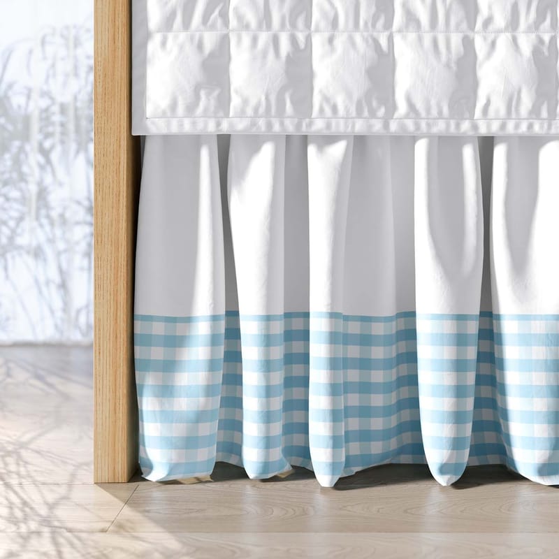 Com duas caídas laterais franzidas, a peça preenche o espaço abaixo do colchão e cobre o estrado do berço, adicionando movimento e capricho ao ambiente.