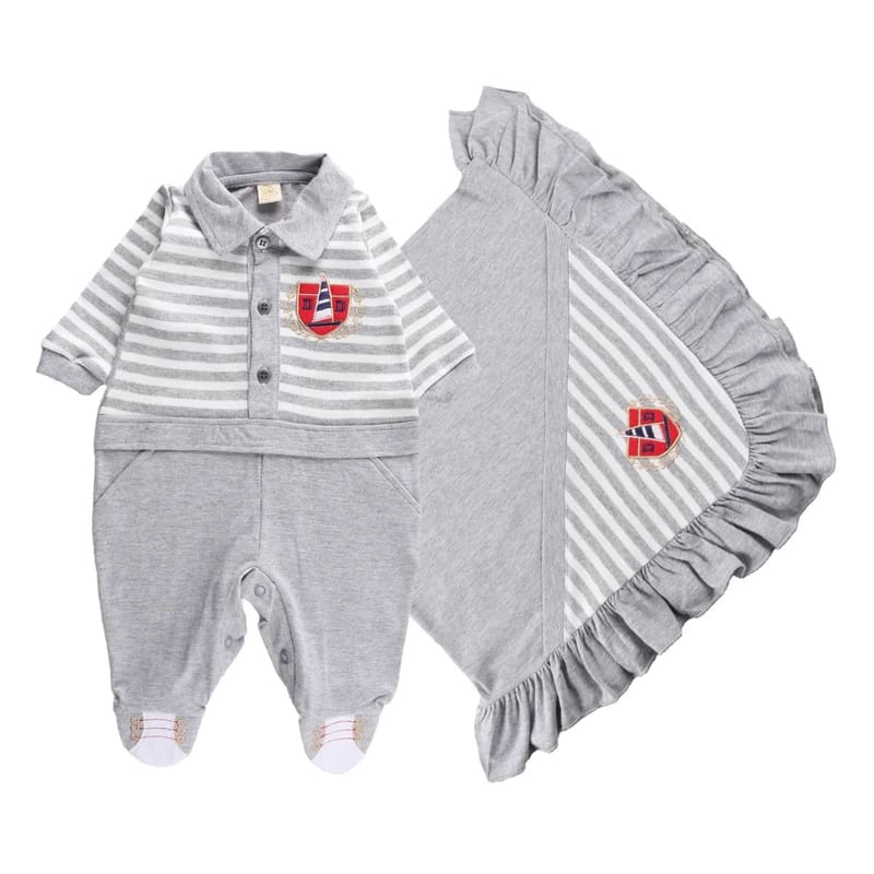 Saída de Maternidade Din Don Bordado Brasão Azul Marinho Tam P