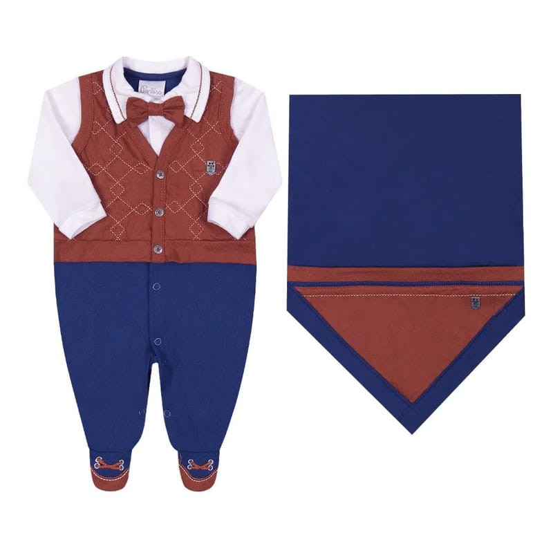 Saída de Maternidade Paraíso com Colete Azul Marinho