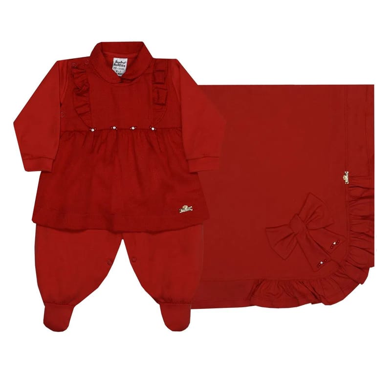 Saída De Maternidade Sonho Mágico Vermelho Babados Na Pala 2 Peças