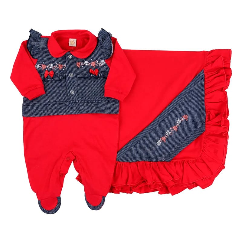 Saída Maternidade Din Don com Gola e Laço Vermelho