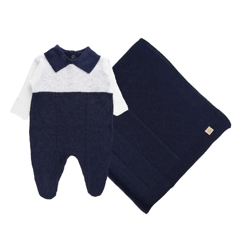Saída Maternidade Din Don em Linho com Pala Trançada Azul Marinho