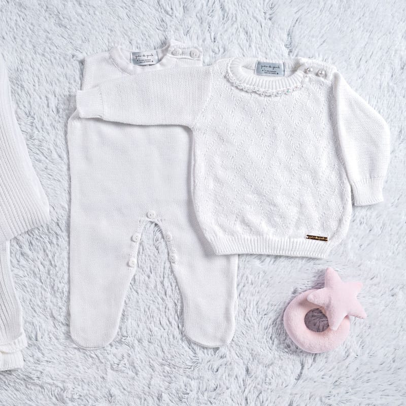 Saída Maternidade Tricot Casaquinho com Pérolas Branco 03 Peças