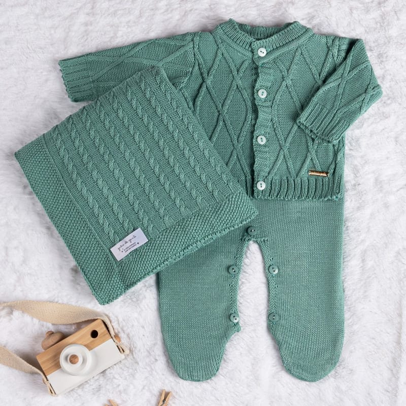 Saída Maternidade Tricot Casaquinho Verde Pistache 03 Peças