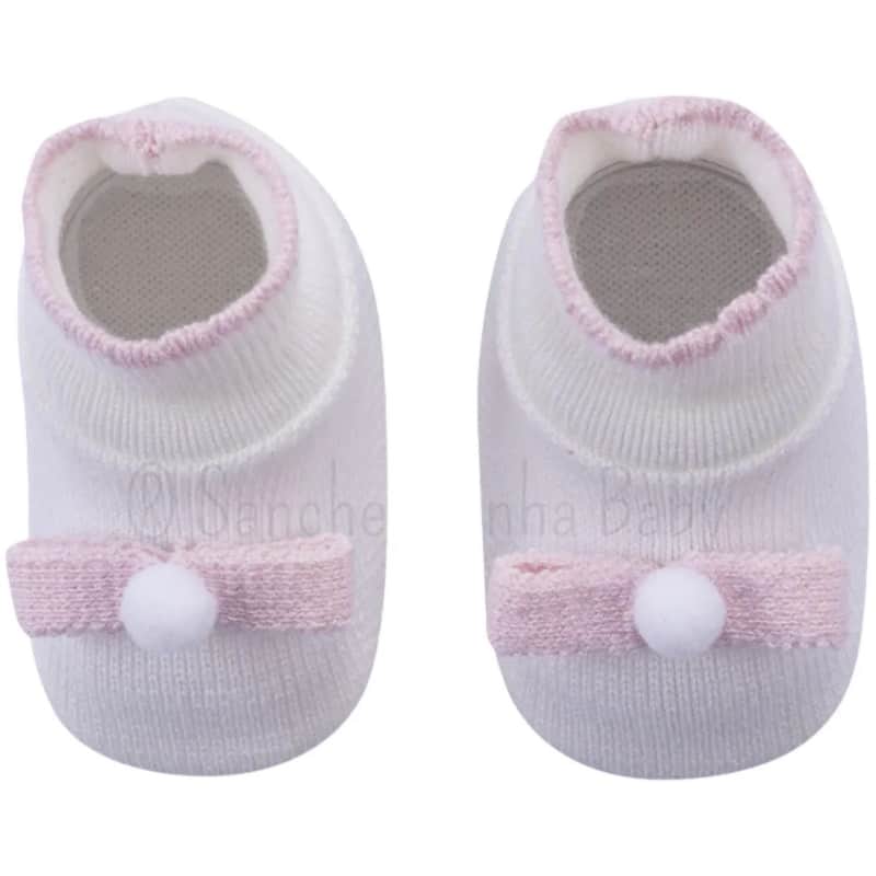 Sapatinho Bebê Sanches Malha em Acrílico Lacinho Branco e Rosa da Sanches: R$ 40,79 no PIX ou R$ 47,99 em ate 12x sem juros. Frete gratis acima de R$499. Entrega rastreada com garantia de 7 dias para trocas.