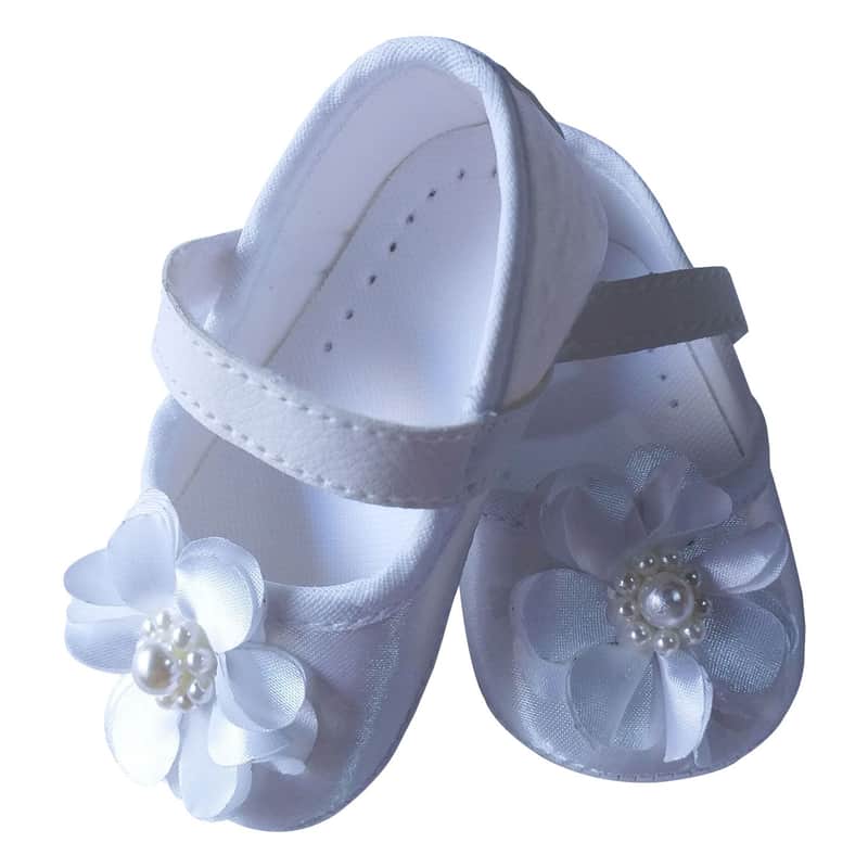 Sapatinho De Bebê com Flor e Pérolas Branco Tamanho 14 da RR Lopes: R$ 42,49 no PIX ou R$ 49,99 em ate 12x sem juros. Frete gratis acima de R$499. Entrega rastreada com garantia de 7 dias para trocas.