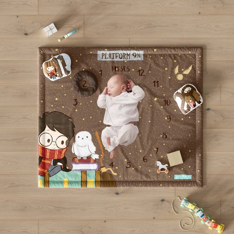 O Tapete Mesversário Harry Potter Plataforma 9 ¾ é uma criação exclusiva da Grão de Gente para capturar e guardar para sempre cada momento especial do desenvolvimento do seu bebê.