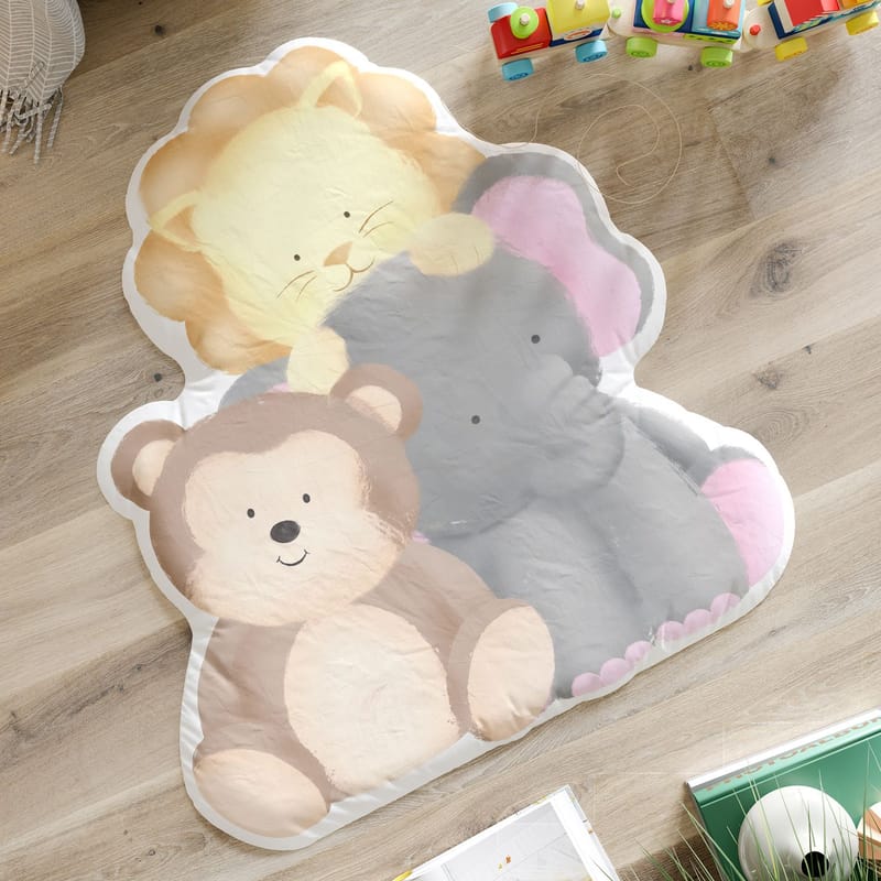 Exclusividade da Grão de Gente, o Tapete Safári Aquarela é uma peça que vai levar um toque lúdico e criativo para a decoração do quarto de bebê ou infantil. Esse tapetinho é produzido com verso antiderrapante, para evitar que deslize no piso.
