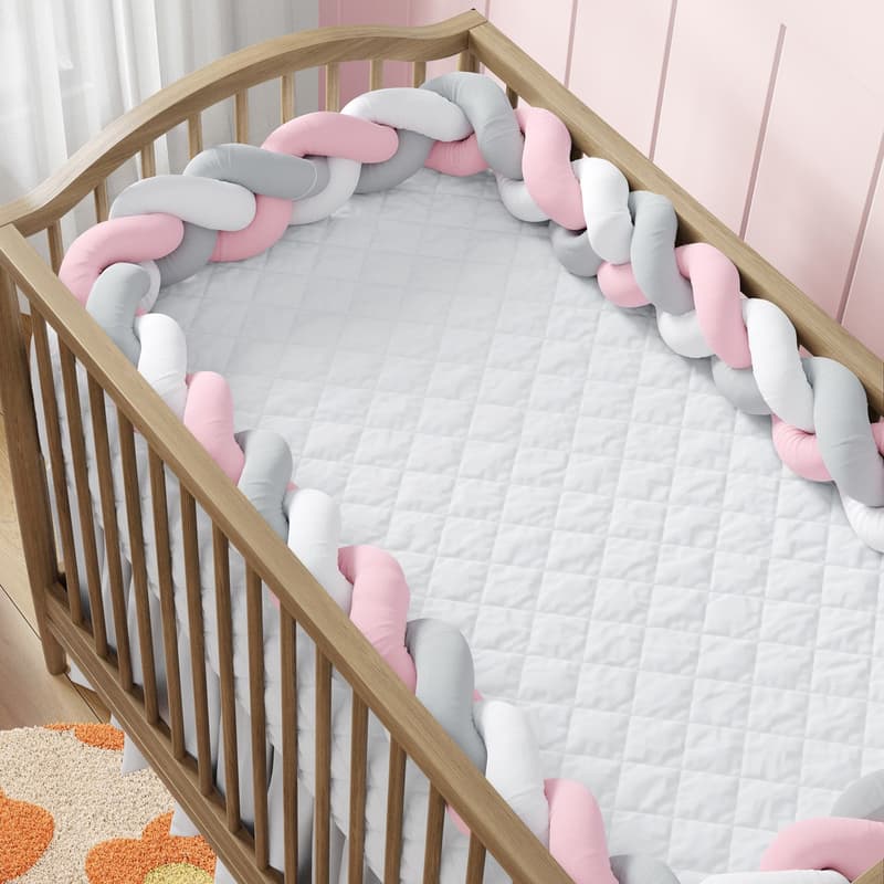 Trança Lateral Para Berço Branco Rosa e Cinza 3,80M