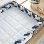 A Trança Lateral Para Cama Montessoriana Casal Branco Cinza e Azul Marinho é uma criação exclusiva da Grão de Gente para complementar a decoração do quarto montessoriano com a atmosfera moderna do protetor trançado.