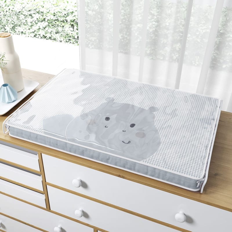 Trocadores para cômoda com espuma firme e capa impermeável removível. Práticos e higiênicos, facilitam a troca de fralda com segurança. Disponíveis em diversos temas para combinar com a decoração do quarto.