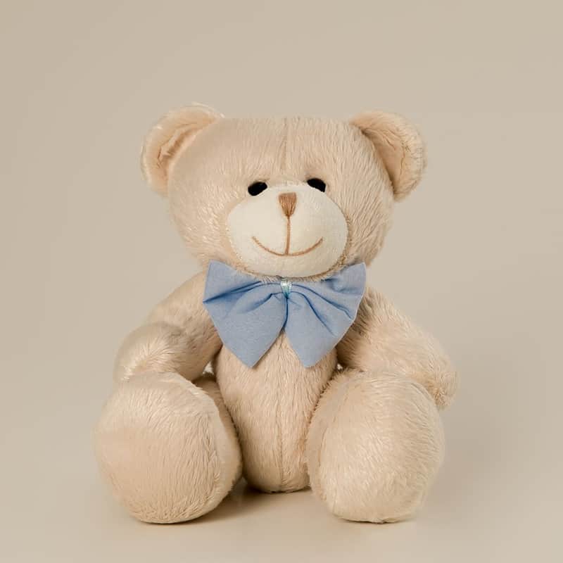 Urso de Pelúcia Bege com Laço Azul 22cm