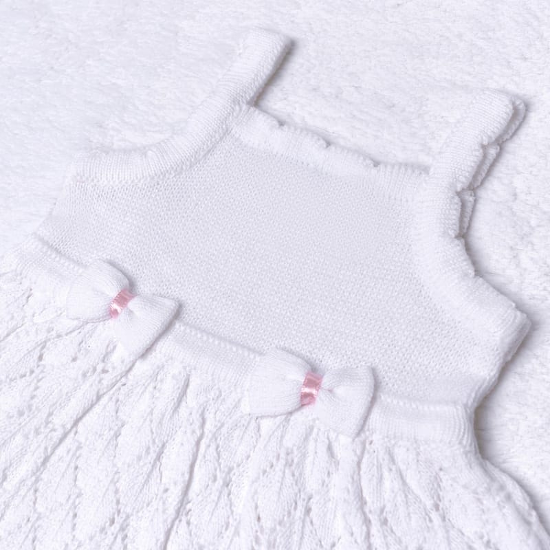 O Vestido Tricot Vazado Laços Vermelho é a peça que faltava para completar o enxoval dos sonhos! Confeccionado com a maciez do tricot, o vestidinho com mix de pontos trabalhados é a definição elegância e suavidade para a sua menina! Perfeito em todas as ocasiões, pode ser utilizado em passeios, festas e momentos especiais.